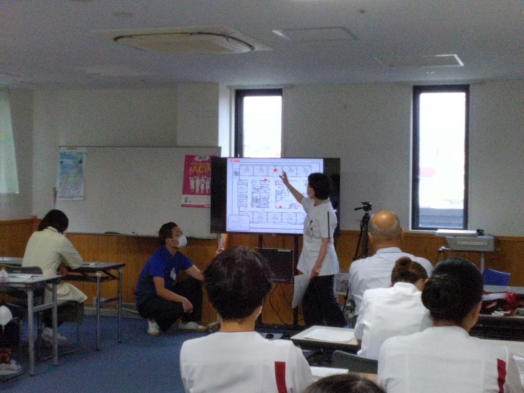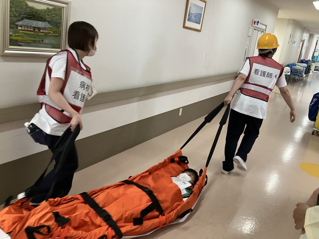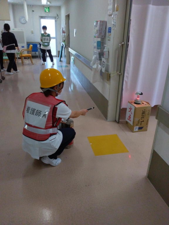 深夜に北3病棟から出火したという想定で、通報~初期消火~避難誘導~消防隊への情報提供といった訓練を行いました。