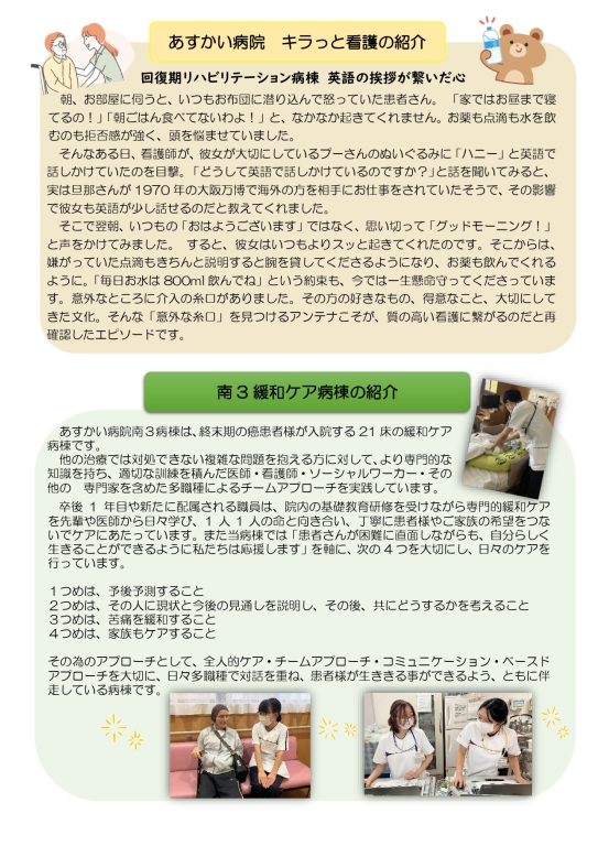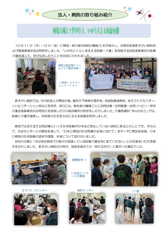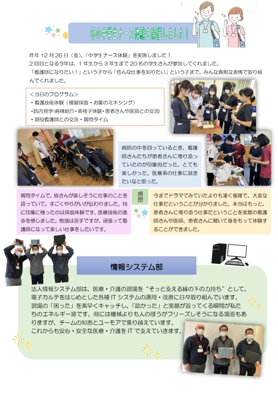 韓国から来日された医療関係者との交流や中学生ナース体験の様子を掲載しています!今回の部署紹介はあの部署…!