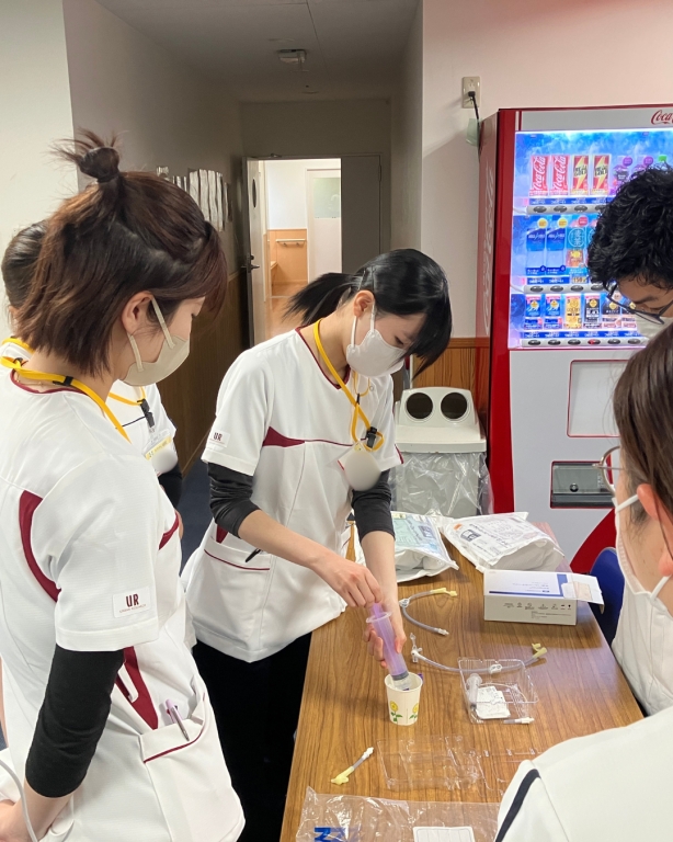 この日は経管栄養法、浣腸/摘便、導尿/留置カテーテル、吸引法などと、看護技術の基本をみっちり学ぶ日でした。
